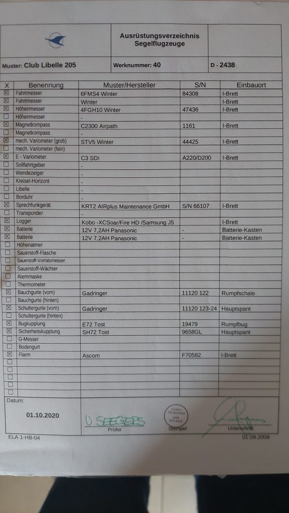 | Club Libelle 205 | Glasflügel Segelflugzeugbau Holighaus&Hillebrand GmbH&Co |
