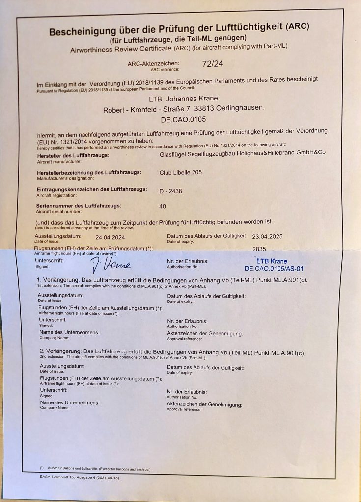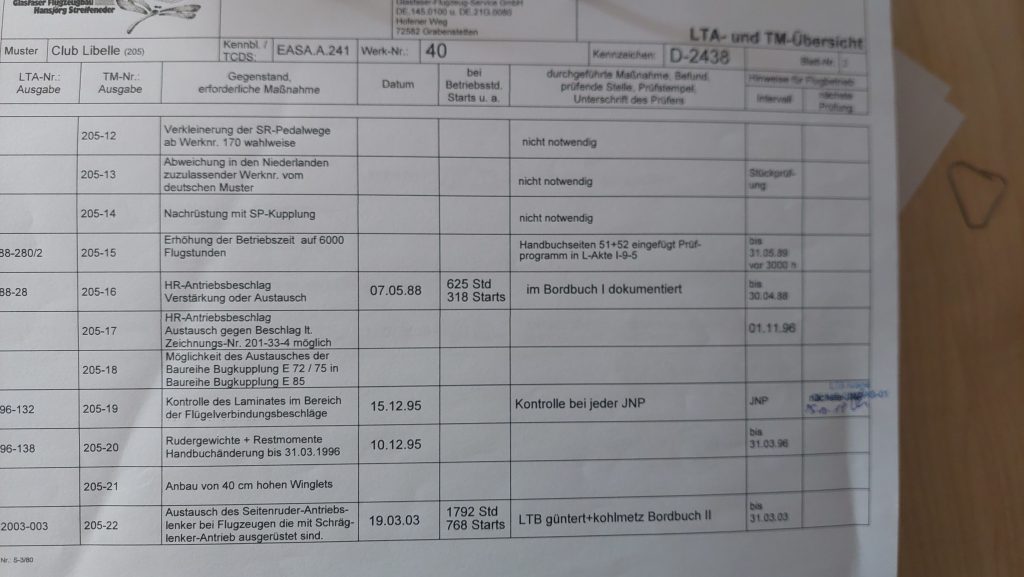 - Bis auf einen Aufrüstschaden am Flächen-Baldachin der vom Vorbesitzer in einem LTB (Lindler) repariert wurde, ist das Flugzeug Bruch-frei.