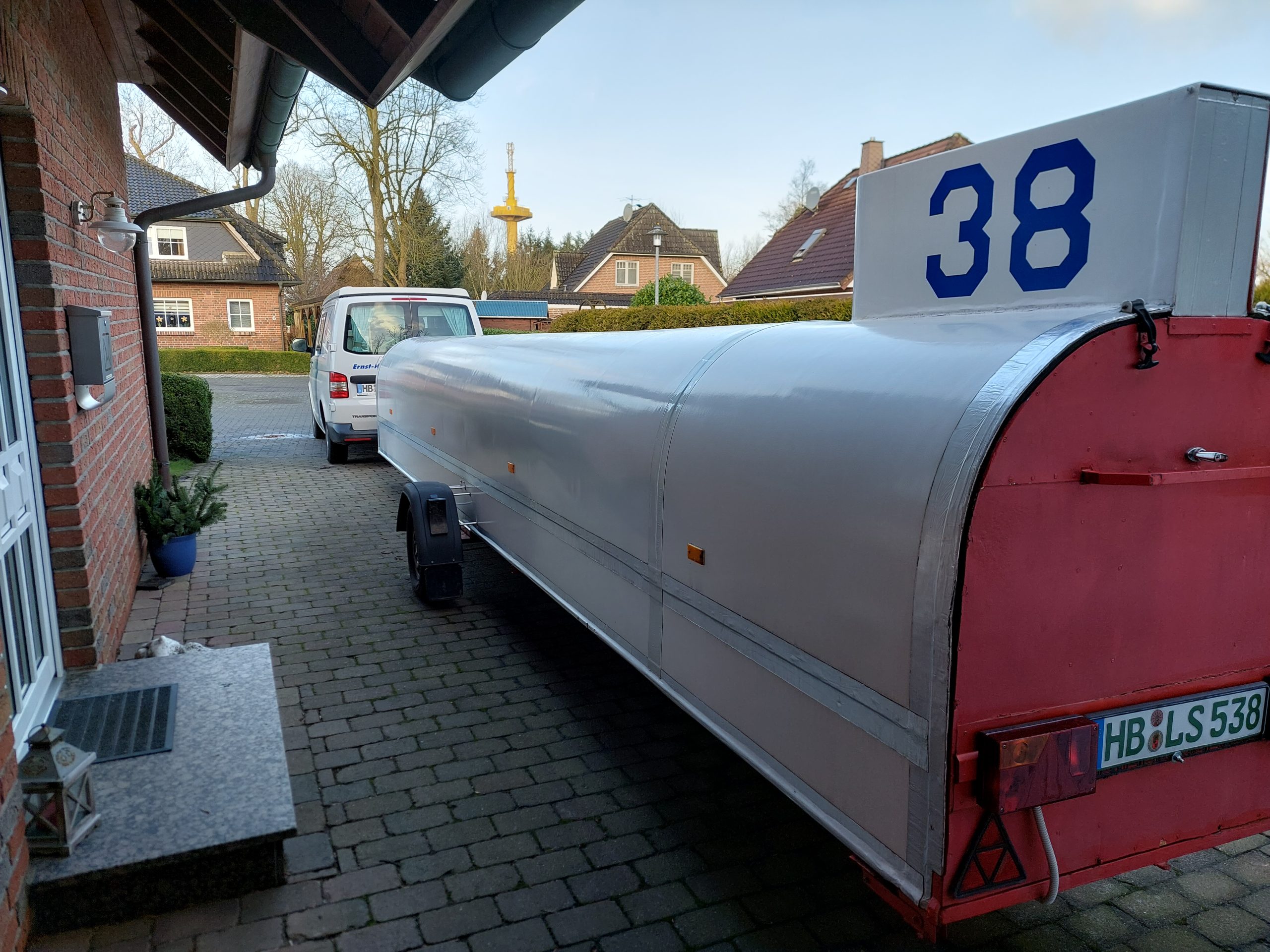 - Anhänger System Langenfeld von hinten zu be- entladen. Der Anhänger hat im Jahr 2014 eine neue Zugvorrichtung incl neuer Achse bekommen. Die Räder (Gummis und Felgen) wurden 2022 erneuert – nächste HU April 2026 – KEIN WARTUNGSSTAU!