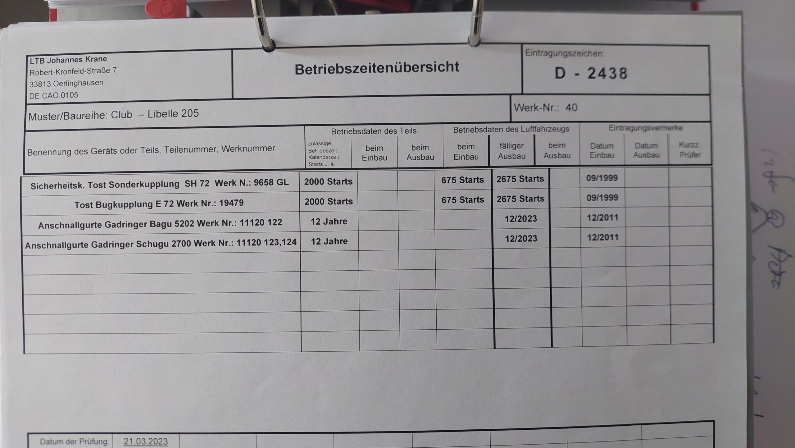 | Betriebszeit: | 2835 Std / 1530 Starts ( Stand 29.04.2024 wird noch geflogen ) |