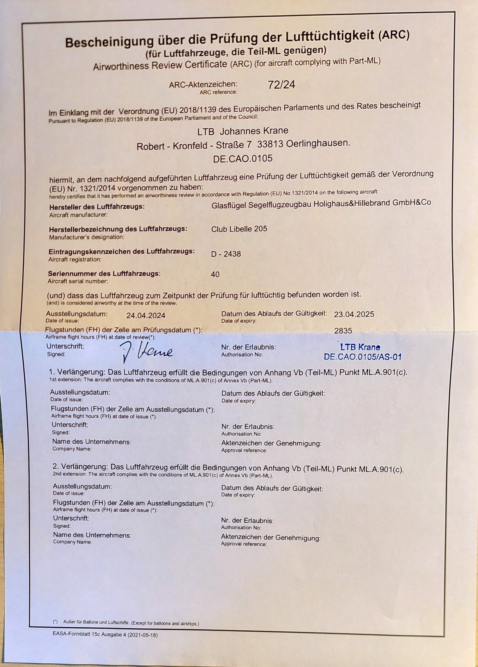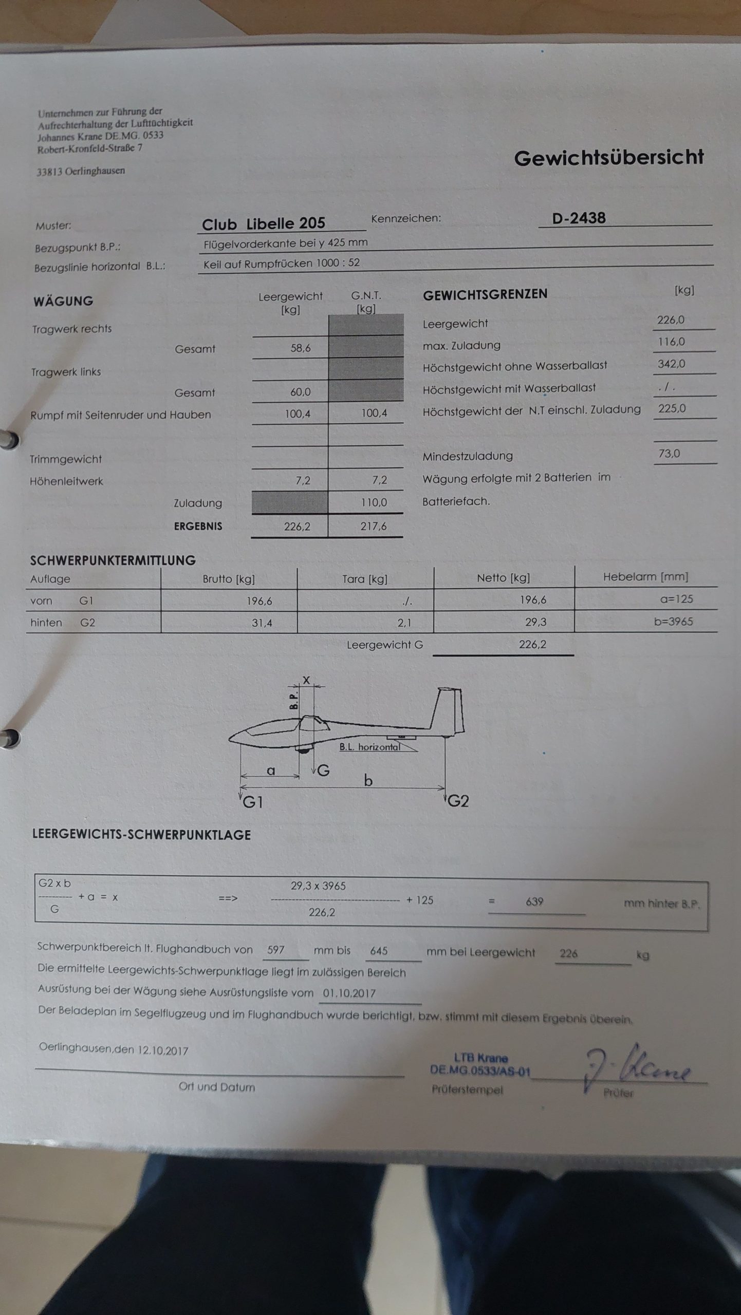 | Club Libelle 205 | Glasflügel Segelflugzeugbau Holighaus&Hillebrand GmbH&Co |